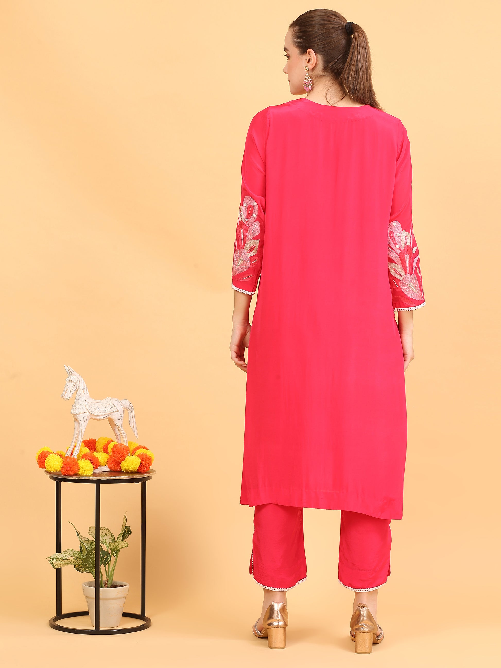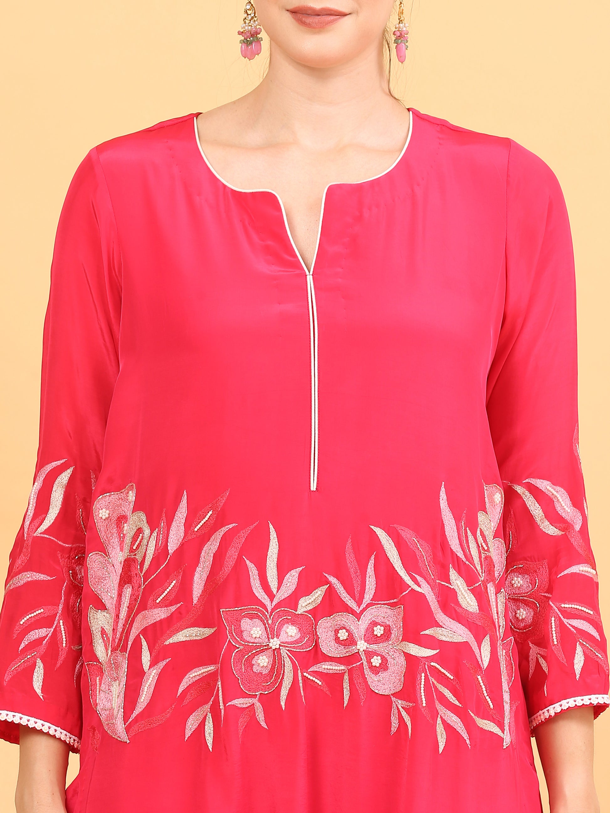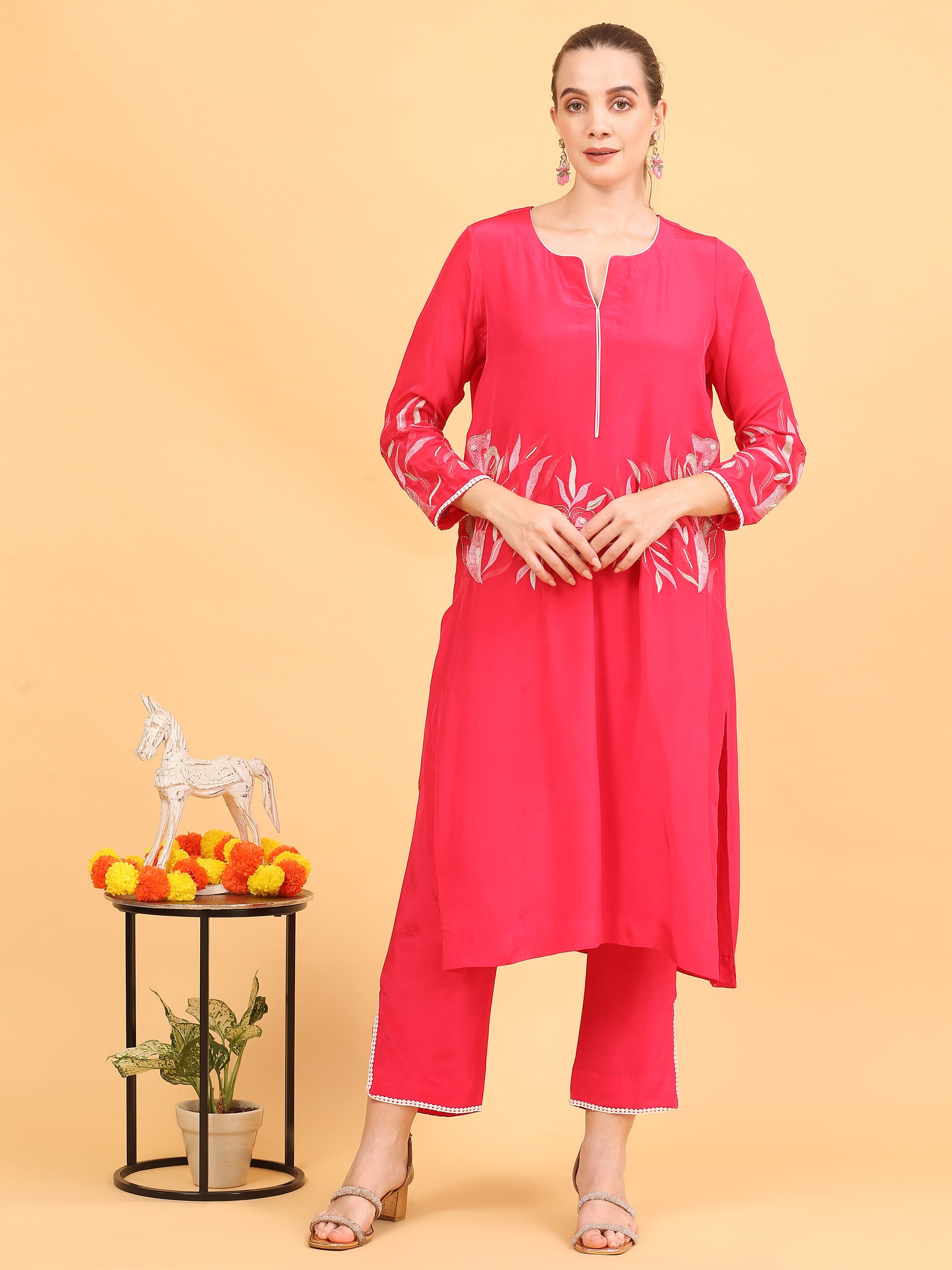 The Kurta and Pants Are Both Designed on Viscose Crepe, Adorned With Intricate Resham, Sequin and Glass Cutdana Embroidery Elegantly Placed Around Waist and Sleeves.do Not Miss the Lace Details on Pants.